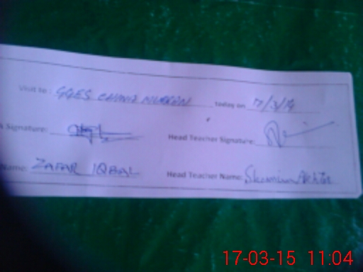| School Visited by School Health & Nutrition Supervisor (No. of Visits) | 1 | Name1: | Sadia Khalid | Name2: | |