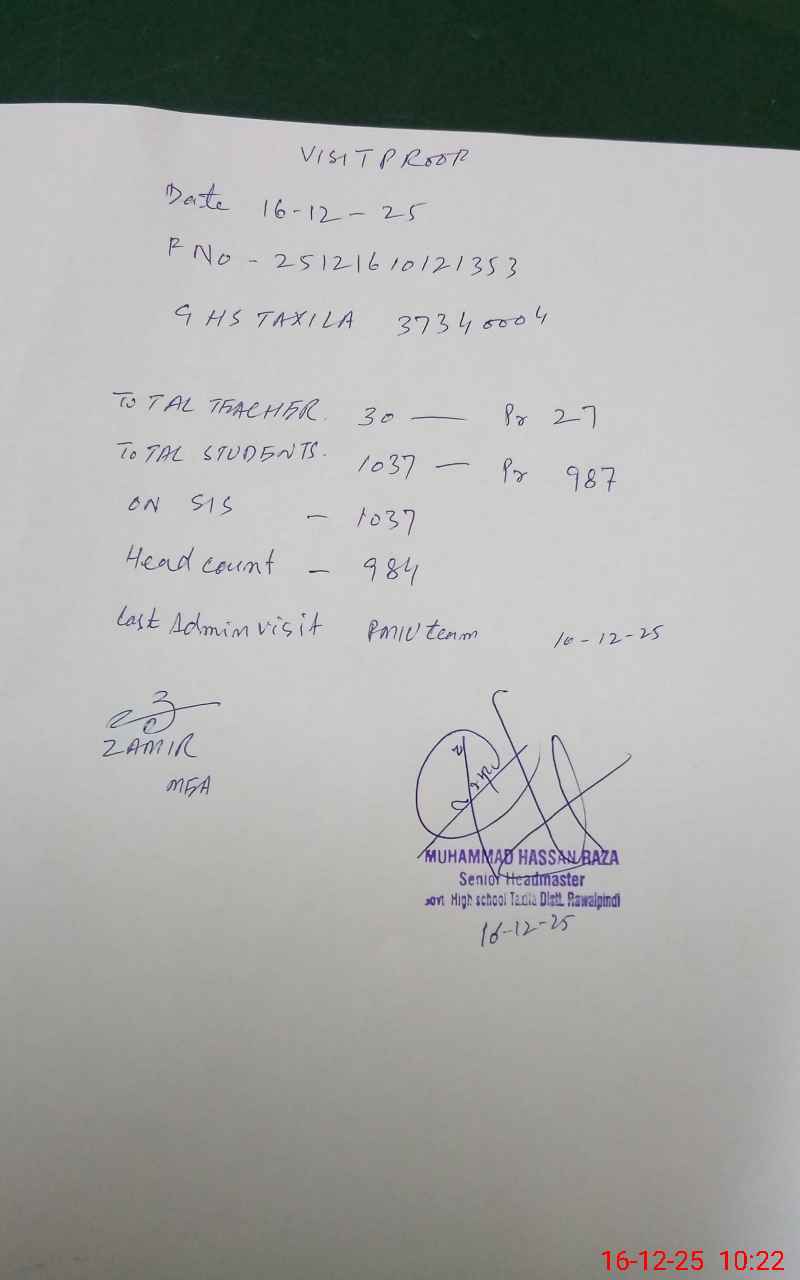 | EMIS Code: 37340004 | Name of School: GHS TAXILA | |||