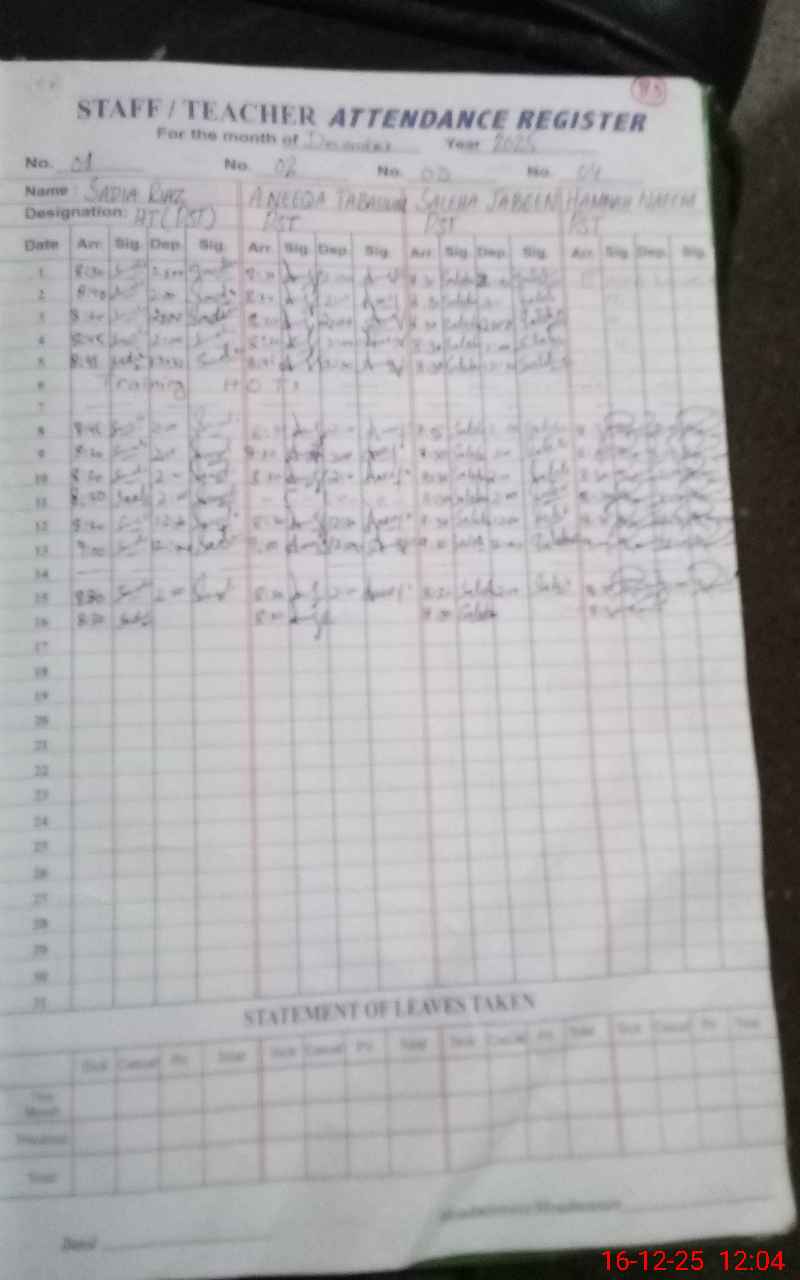 | 61**** | Uz**** Ch**** | PST Science/Maths | Regular | 0 | 0 | 0 | 0 | 0 | 0 | 0 | 0 | 0 | Casual |