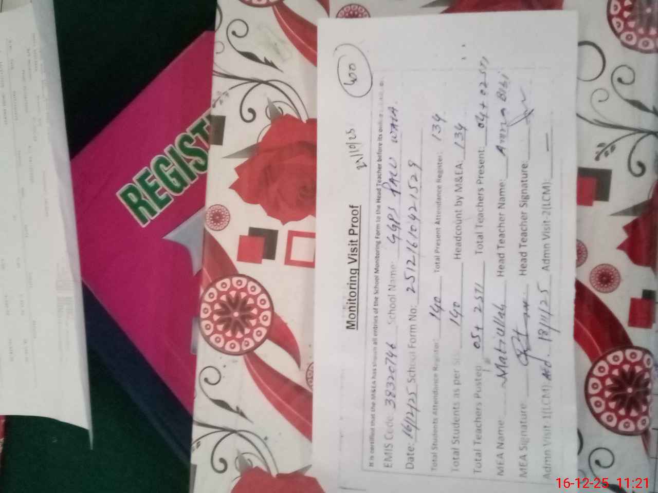 | EMIS Code: 38320746 | Name of School: GGPS PALU WALA | |||
