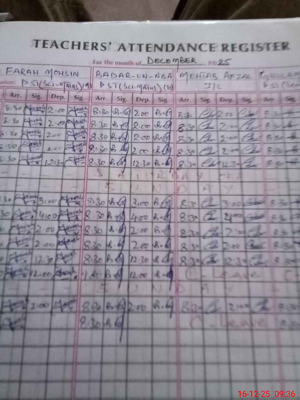 | CNIC | Full Name | Designation | R/C | Absence During Last Calender Month |
