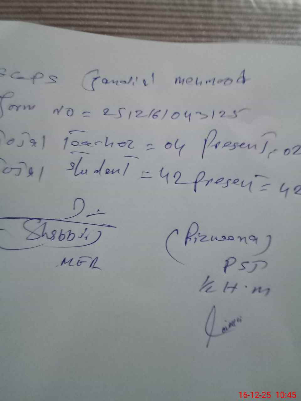 | Name: Ar**** Za**** Designation: (School Headmaster's/Headmistress's) HEADMISTRESS Phone/Cell Number: 03**** |