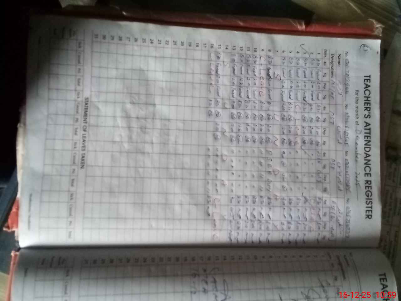 | CNIC | Full Name | Designation | R/C | Absence During Last Calender Month |