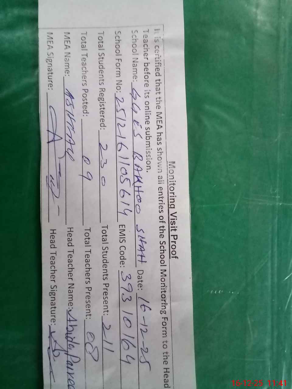 | EMIS Code: 39310164 | Name of School: GGES BAKHOO SHAH | |||