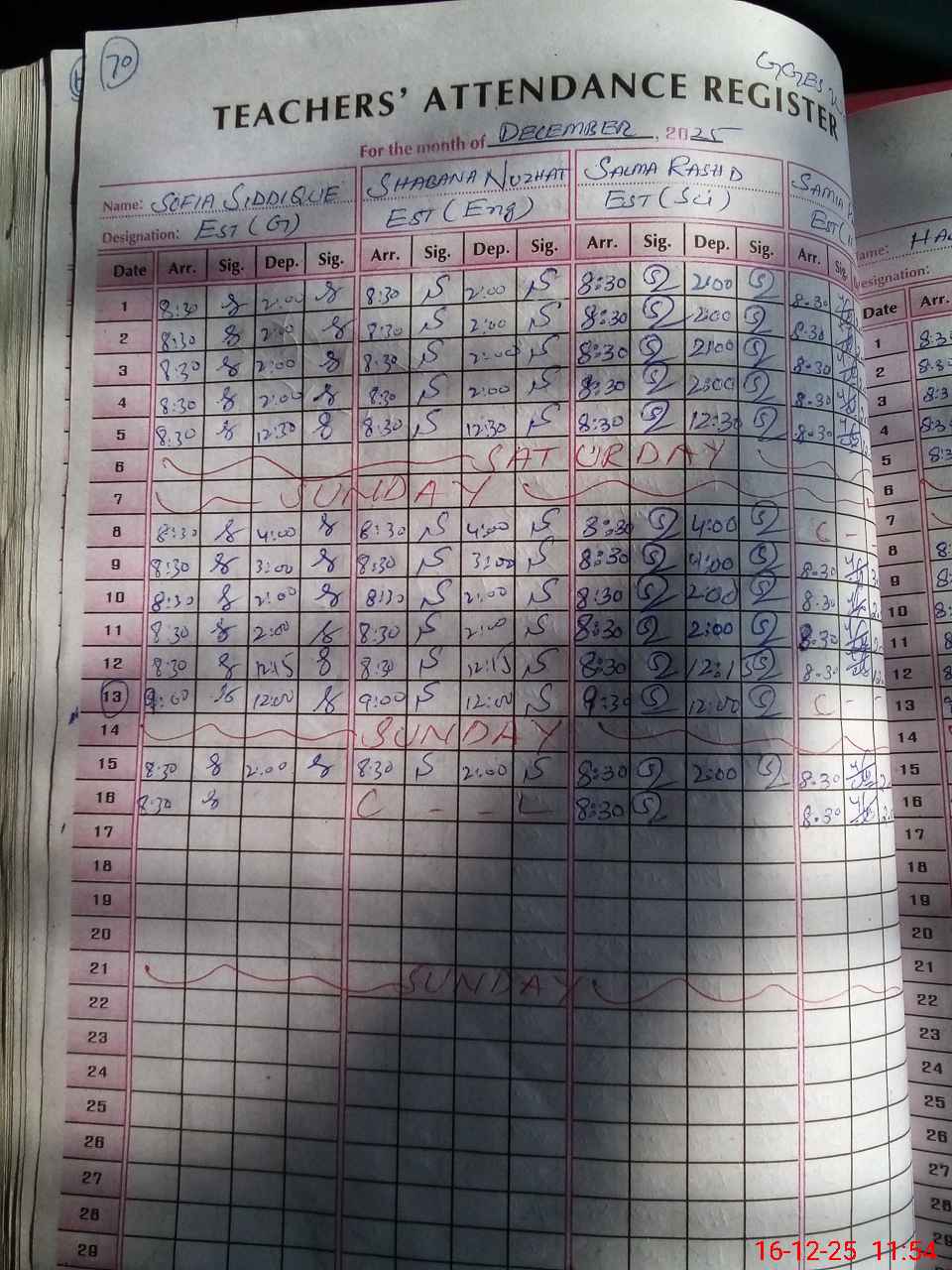 | CNIC | Full Name | Designation | R/C | Absence During Last Calender Month |