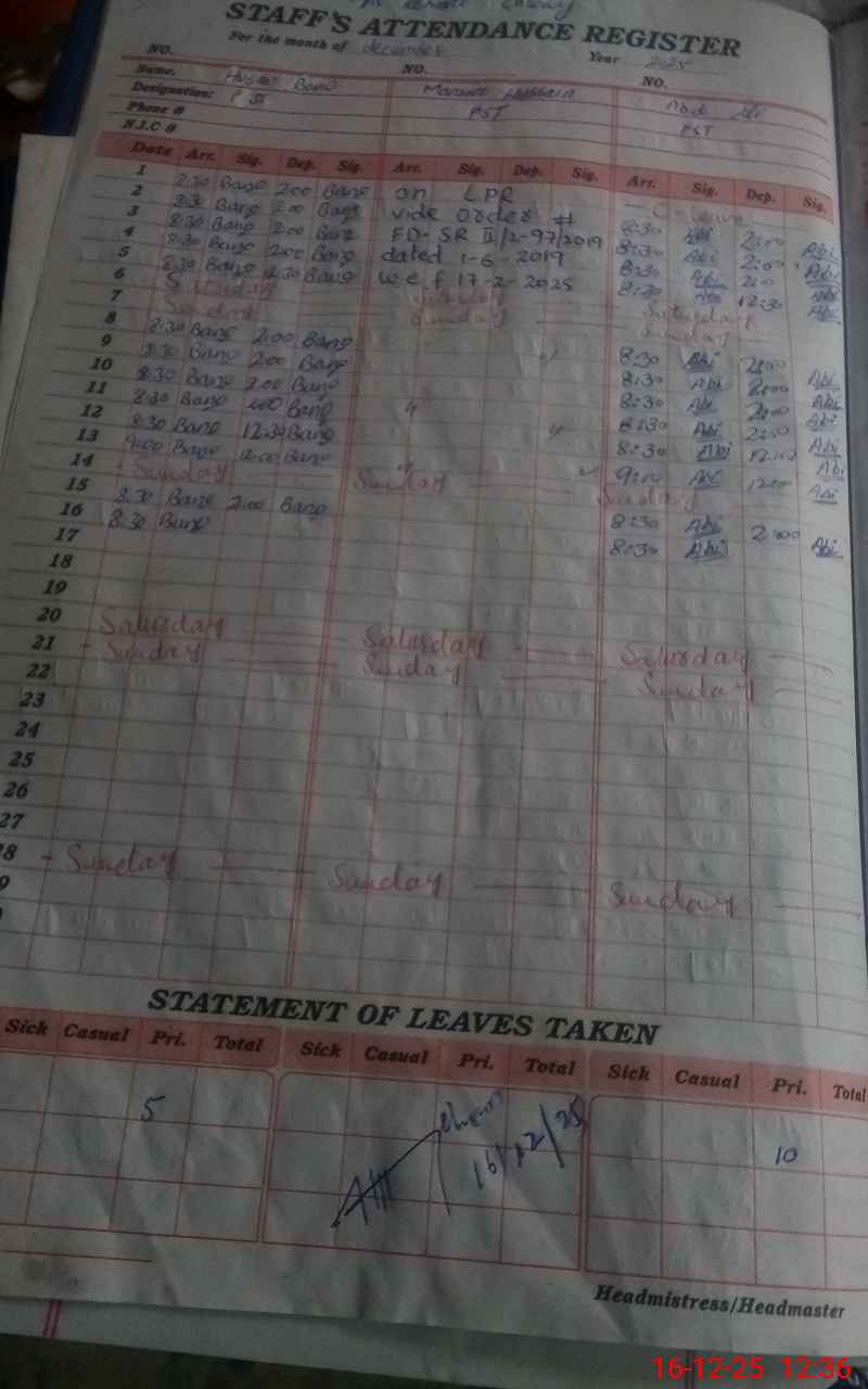 | Name: MA**** HU**** Designation: (School Headmaster's/Headmistress's) PTC/JV Phone/Cell Number: 03**** |