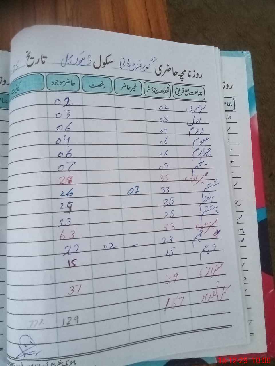 | No. of Students Present - Male | 0 | 0 | 3 | 6 | 4 | 6 | 7 | 26 | 24 | 13 | 22 | 15 | 128 | |||