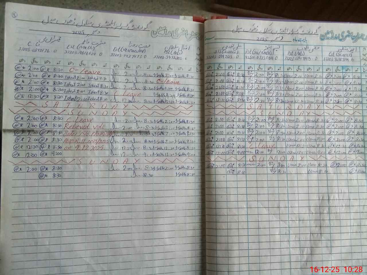 | CNIC | Full Name | Designation | R/C | Absence During Last Calender Month |