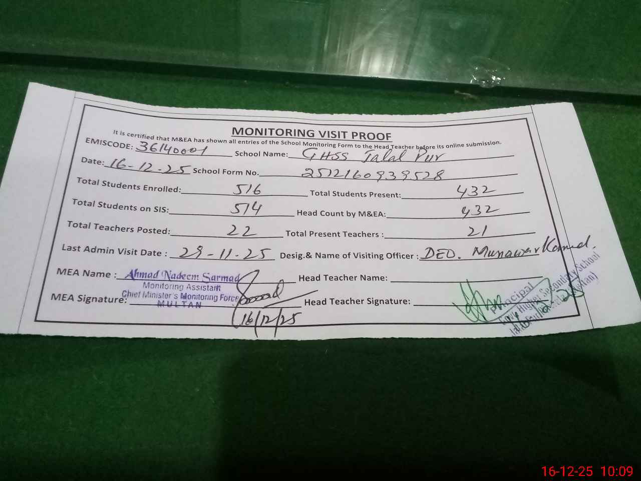 | EMIS Code: 36140001 | Name of School: GHSS JALALPUR PIRWALA | |||