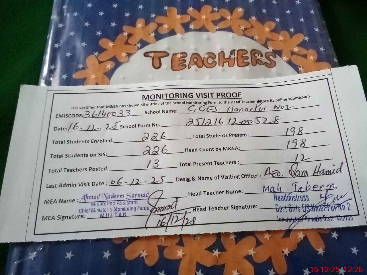 | EMIS Code: 36140033 | Name of School: GGES UMER PUR NO.2 | |||