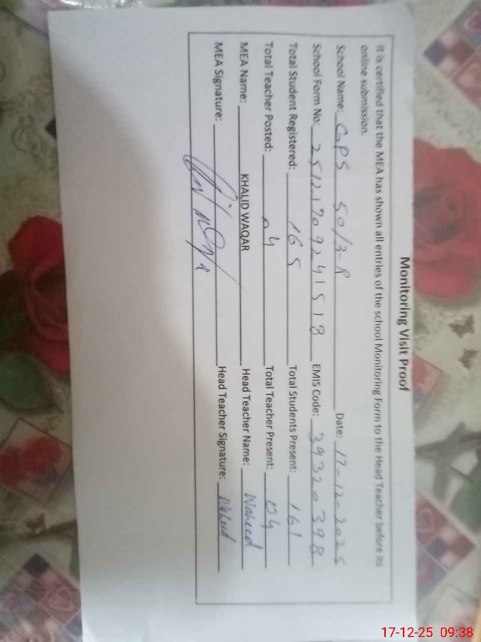 | EMIS Code: 39320398 | Name of School: GPS CHAK NO. 50/3-R | |||