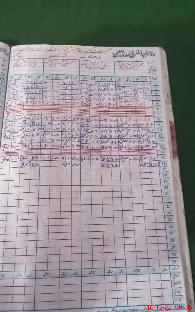 | CNIC | Full Name | Designation | R/C | Absence During Last Calender Month |