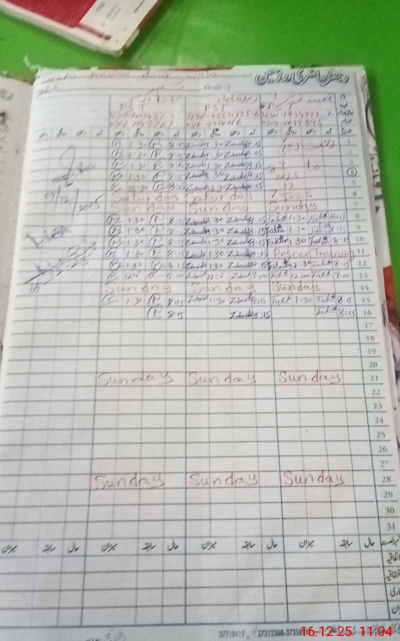 | CNIC | Full Name | Designation | R/C | Absence During Last Calender Month |