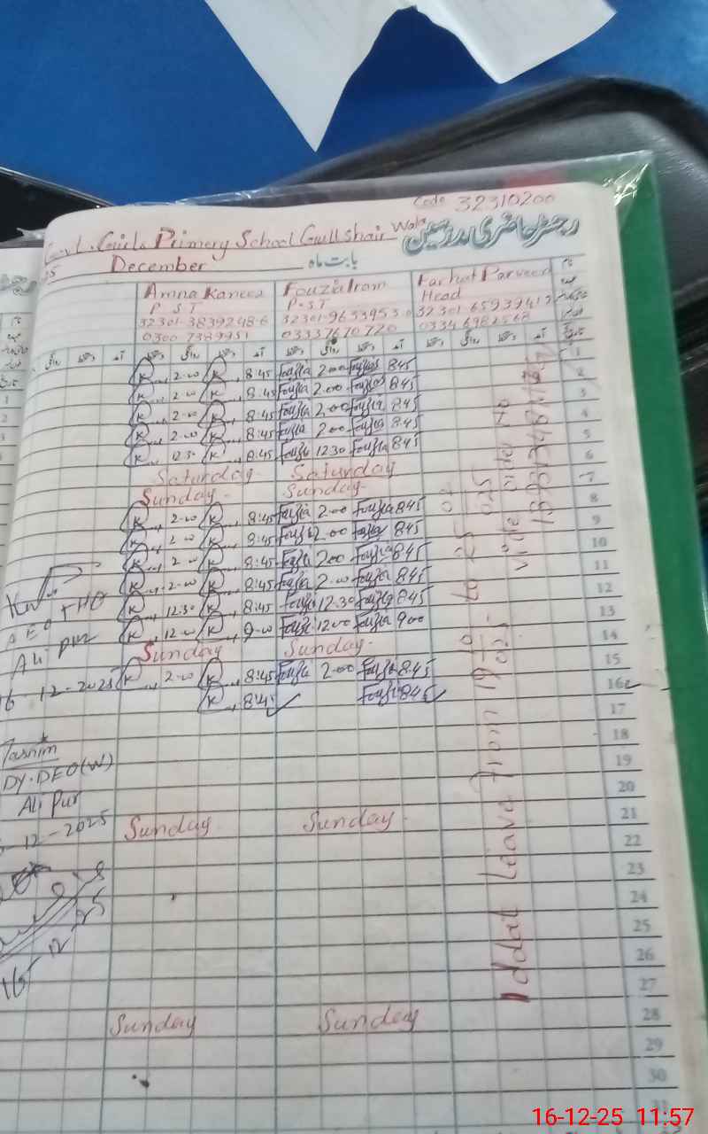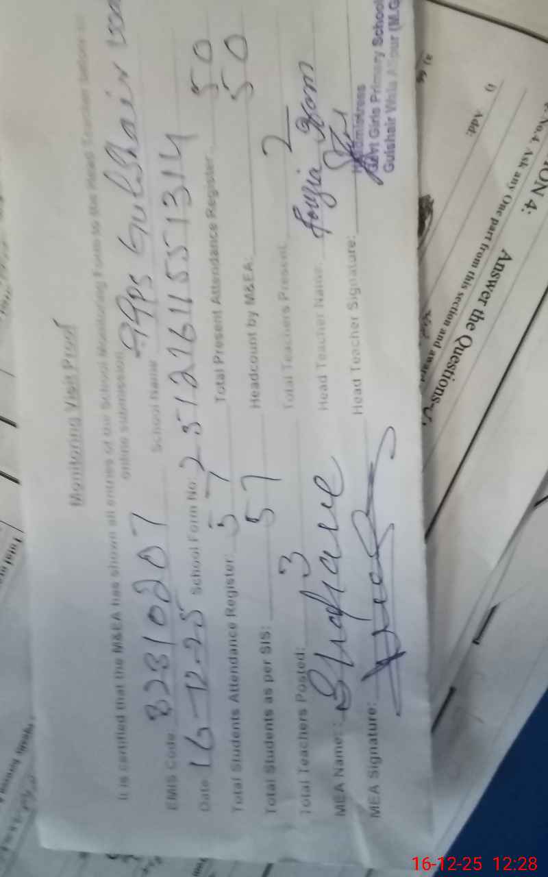 | EMIS Code: 32310200 | Name of School: GGPS GULSHAIR WALA | |||