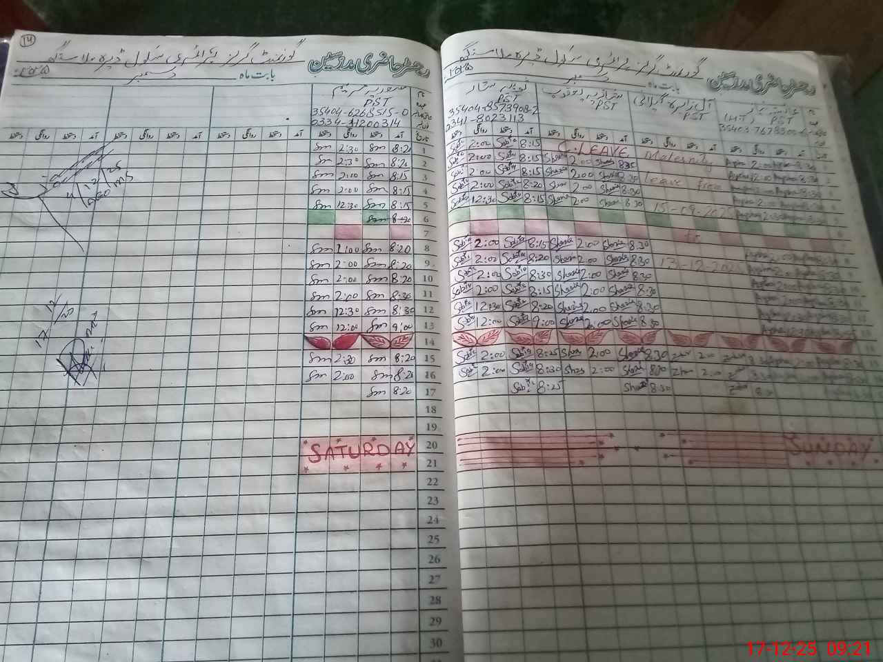 | CNIC | Full Name | Designation | R/C | Absence During Last Calender Month |