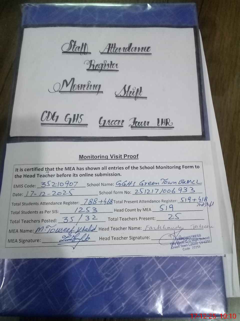 | EMIS Code: 35210907 | Name of School: GGHS GREEN TOWN (EX-MCL) | |||
