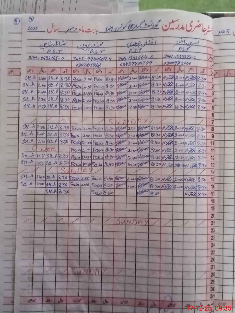 | Name: NA**** AK**** Designation: (School Headmaster's/Headmistress's) PST Phone/Cell Number: 03**** |