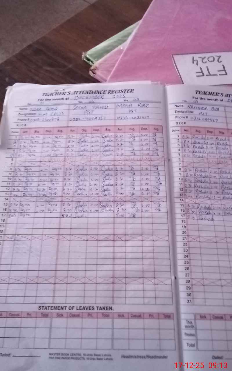 | Name: Iq**** Qa**** Designation: (School Headmaster's/Headmistress's) Head Mistress Phone/Cell Number: 03**** |