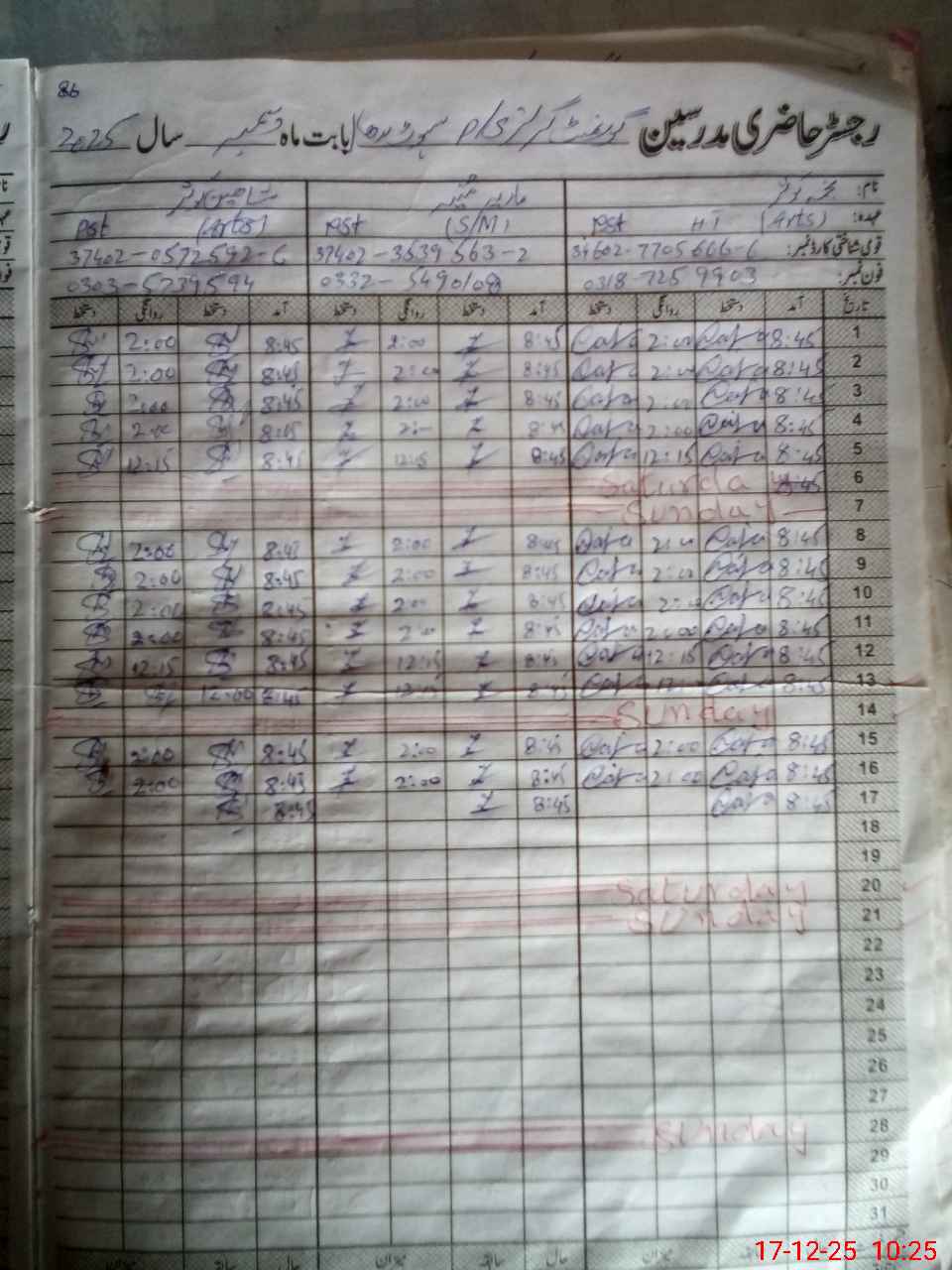| CNIC | Full Name | Designation | R/C | Absence During Last Calender Month |