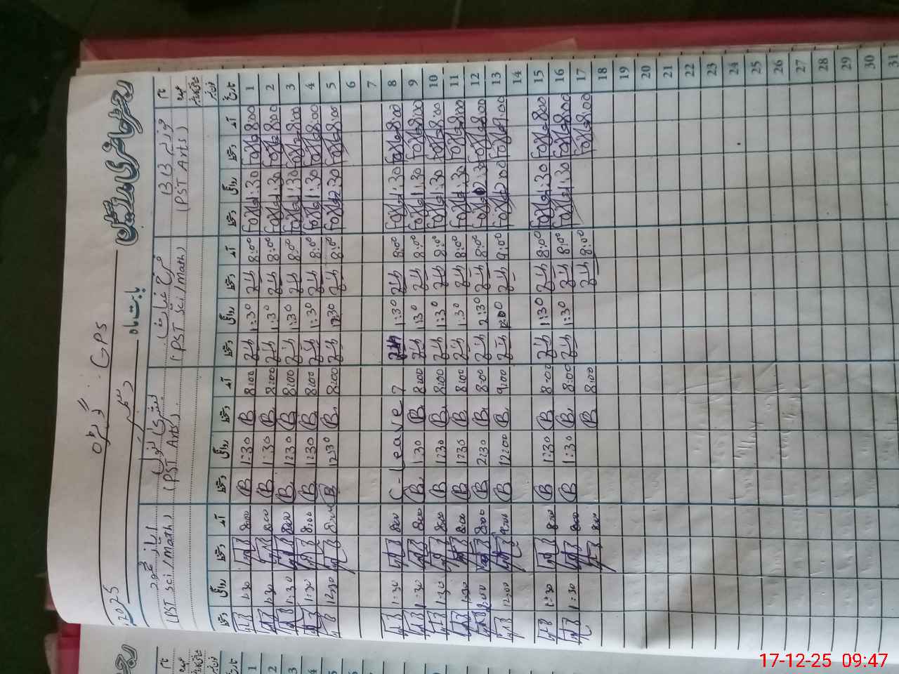 | CNIC | Full Name | Designation | R/C | Absence during last cal. month |