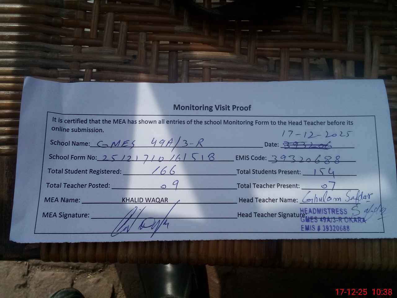 | EMIS Code: 39320688 | Name of School: GMES 49-A/3-R | |||