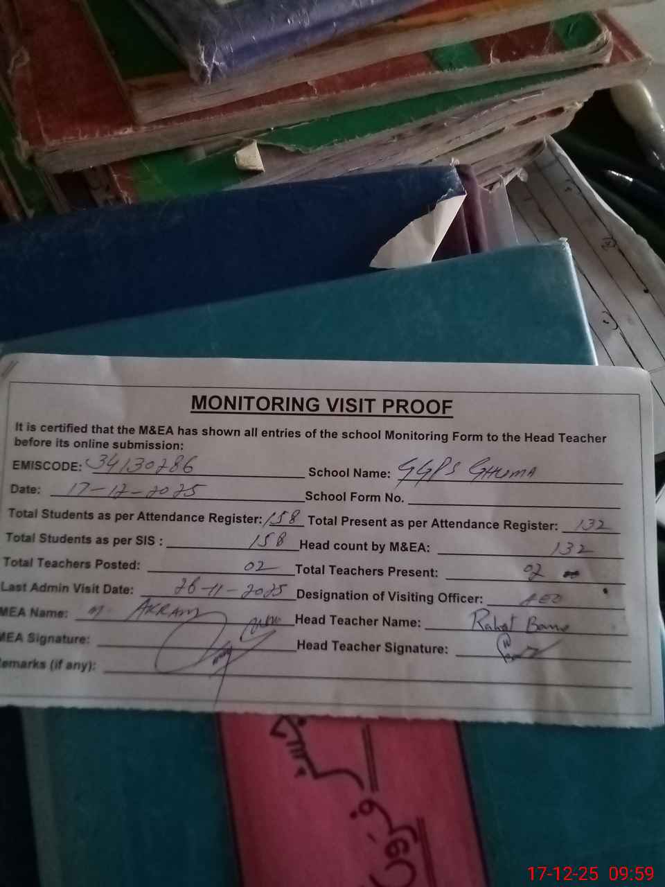 | EMIS Code: 34130286 | Name of School: GGPS GUMMA | |||