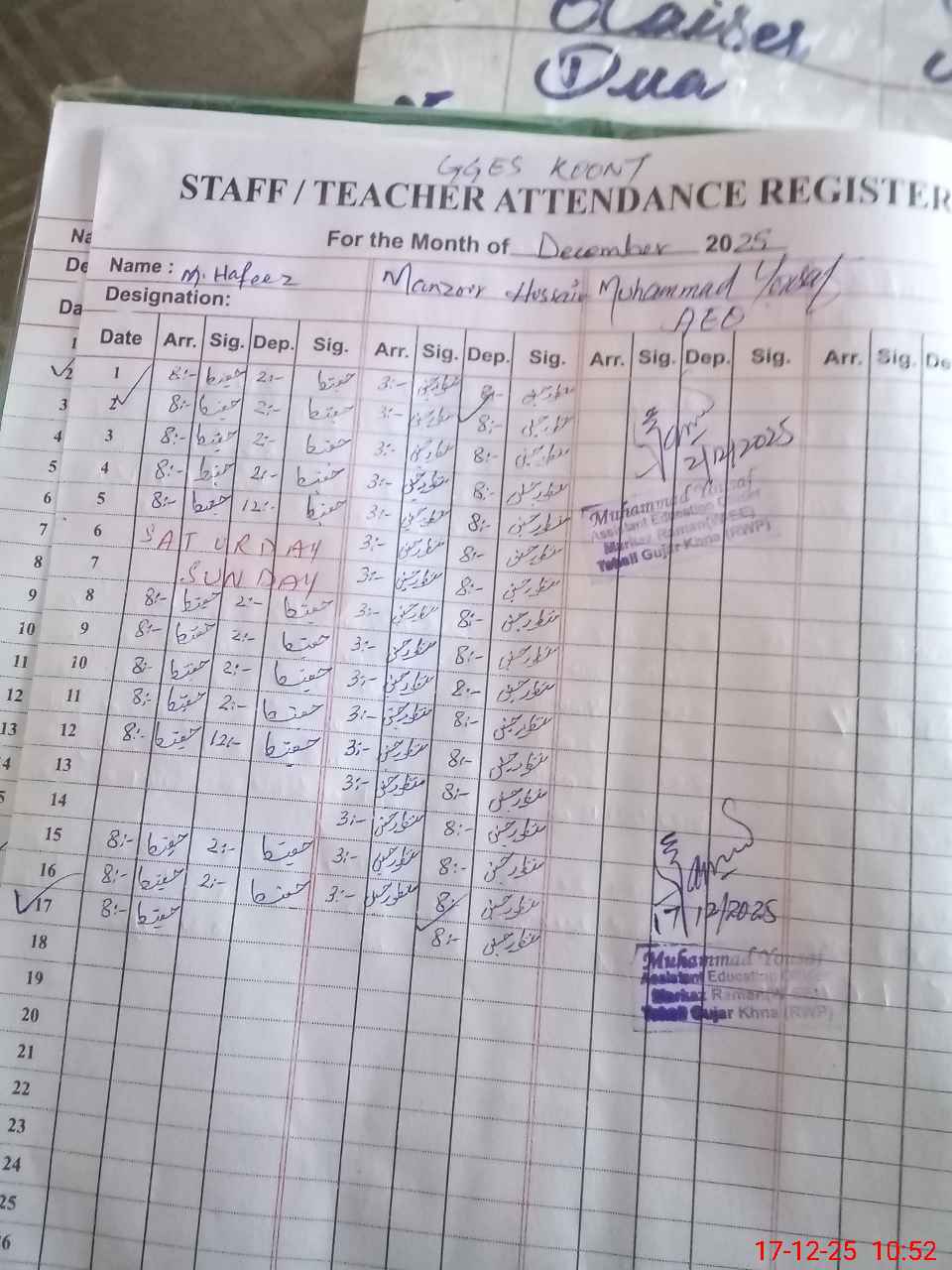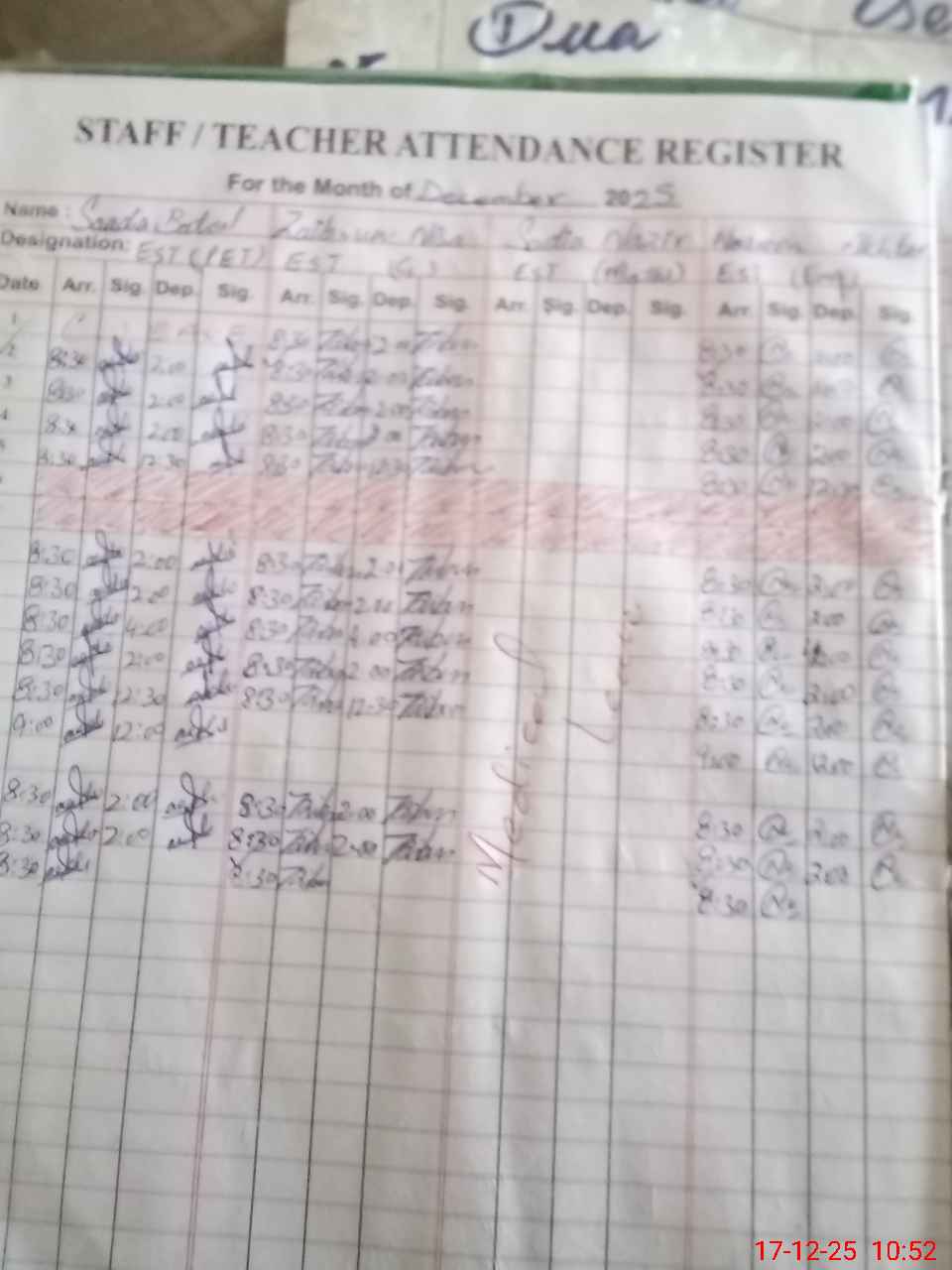 | Name: Sa**** Ba**** Designation: (School Headmaster's/Headmistress's) EST(PET) Phone/Cell Number: 03**** |