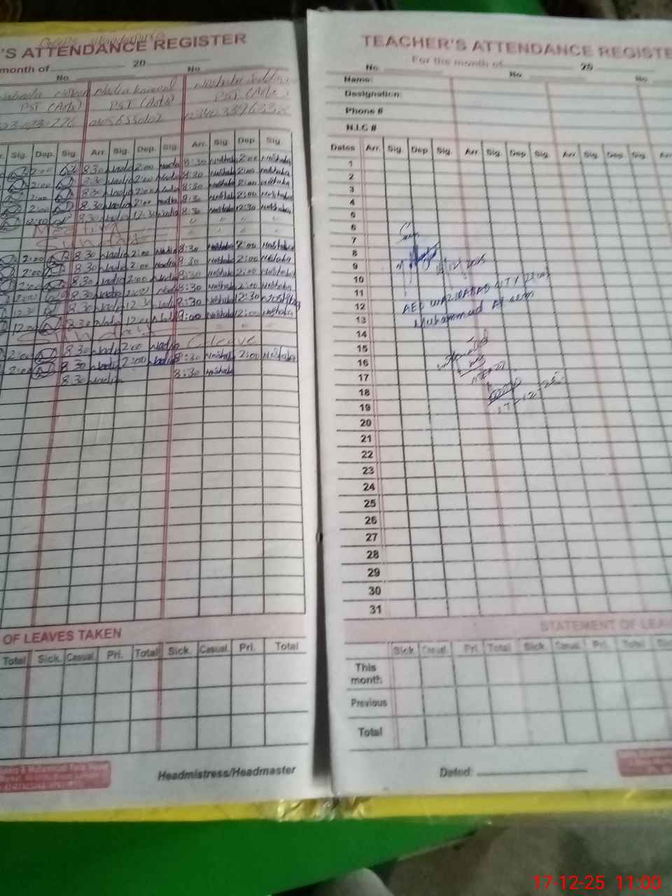 | Name: An**** As**** Designation: (School Headmaster's/Headmistress's) PST Phone/Cell Number: 03**** |