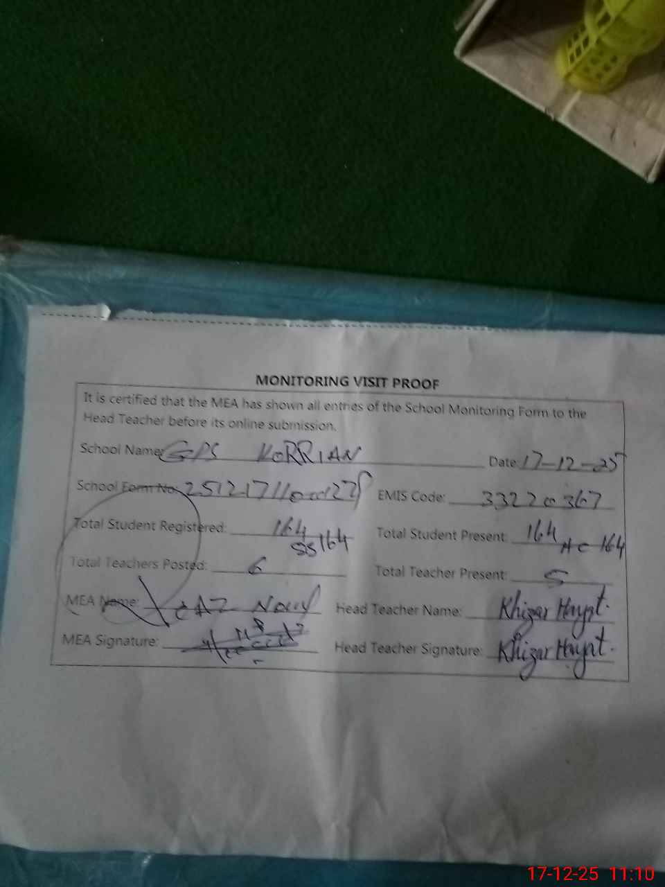 | EMIS Code: 33220367 | Name of School: GPS KORRIAN | |||