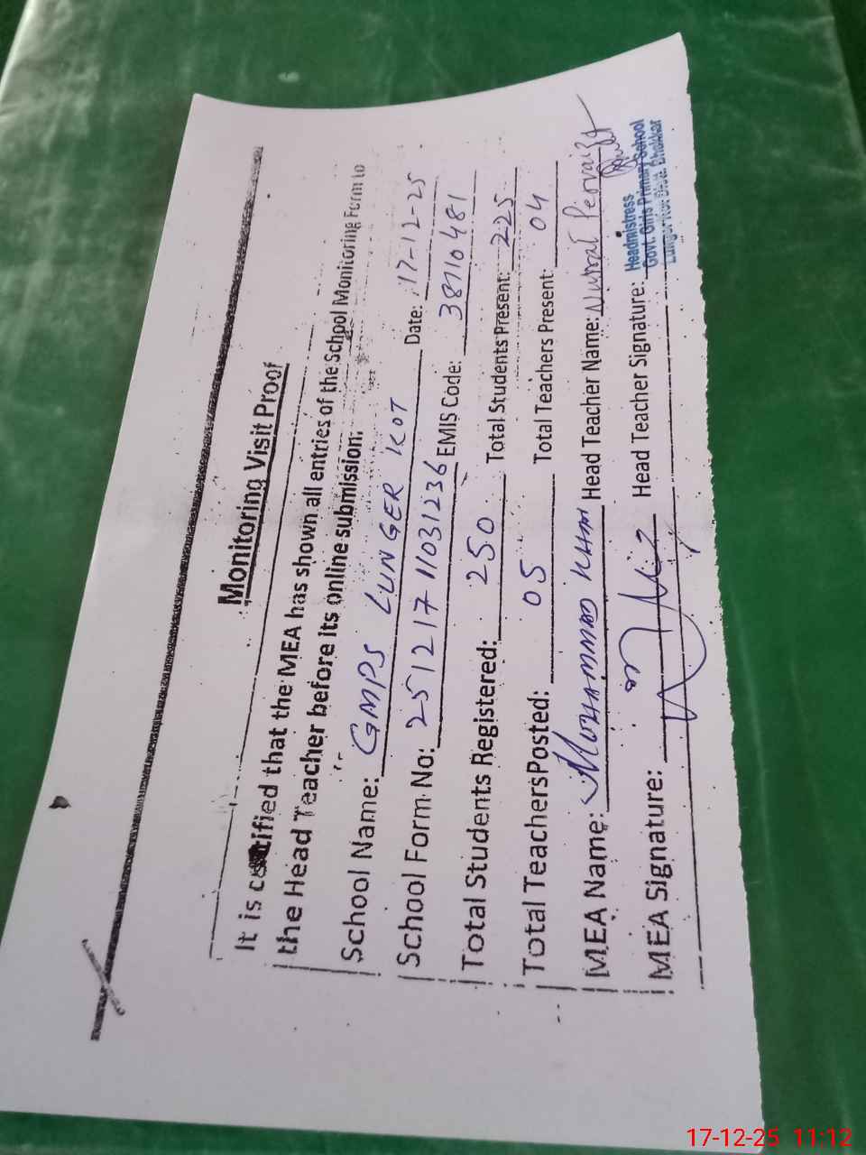 | EMIS Code: 38110481 | Name of School: GMPS LUNGER KOT | |||