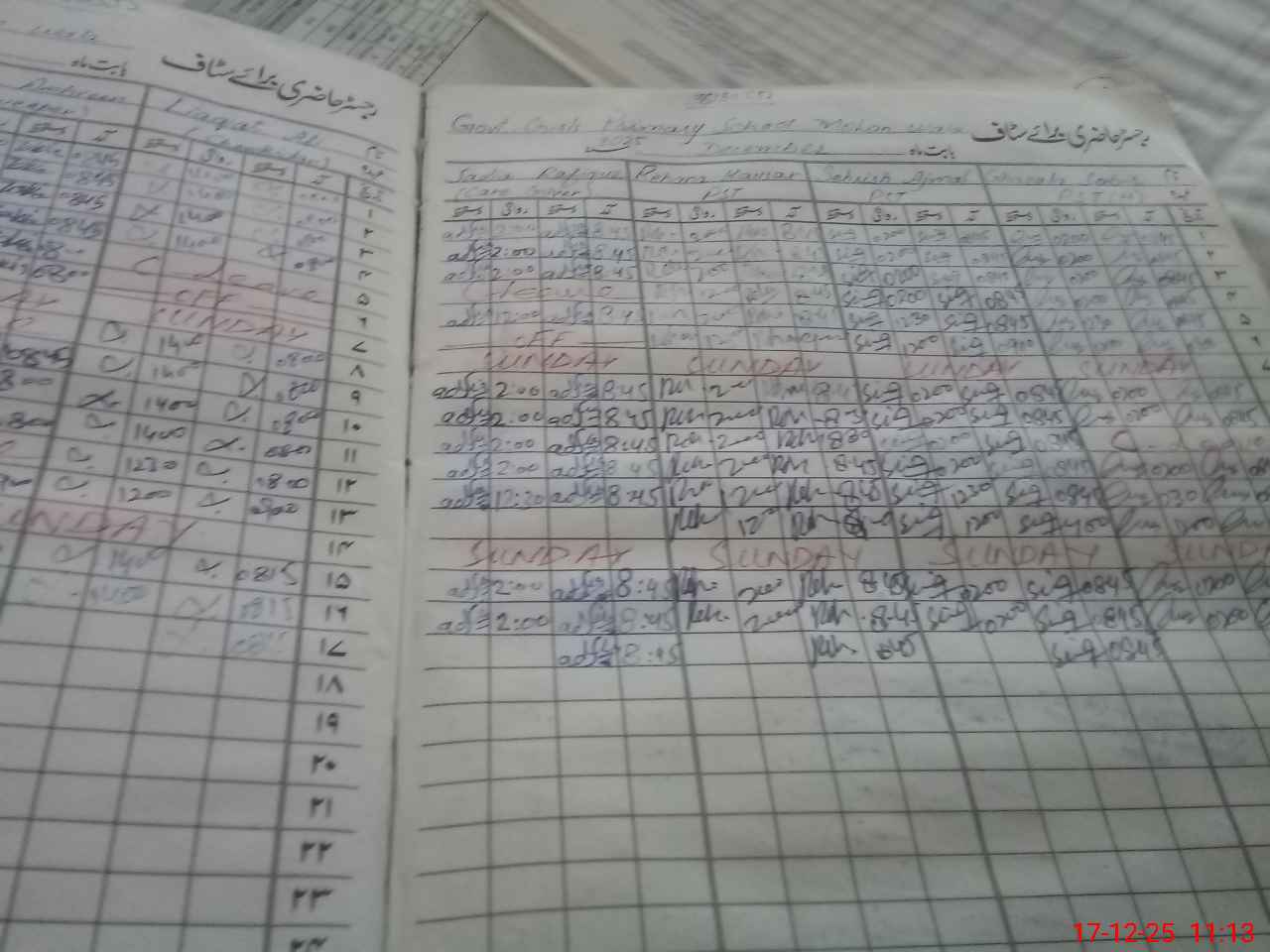 | CNIC | Full Name | Designation | R/C | Absence During Last Calender Month |