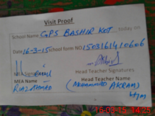 | EMIS Code: 39310314 | Name of School: GPS BASHIR KOT | |||