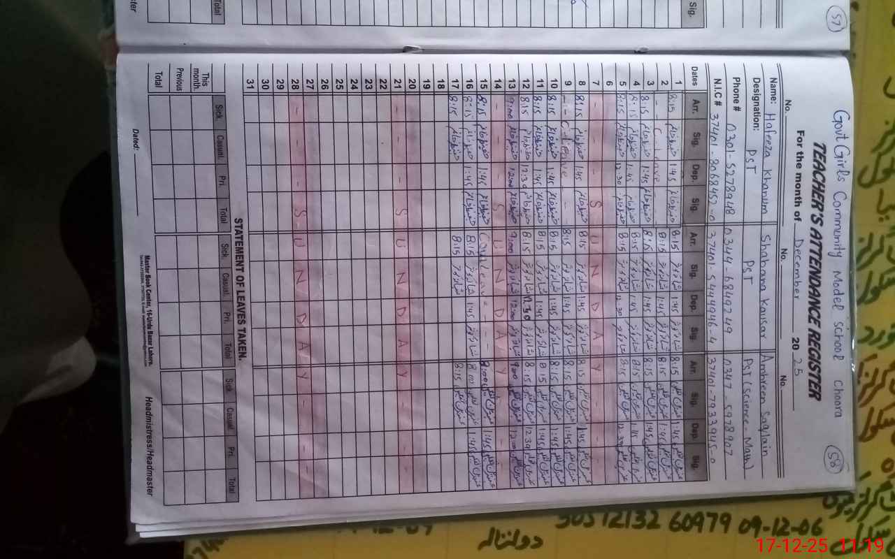 | Name: HA**** KH**** Designation: (School Headmaster's/Headmistress's) PST Phone/Cell Number: 03**** |