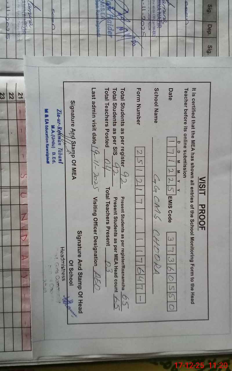 | EMIS Code: 37360550 | Name of School: GGCMS CHOORA | |||