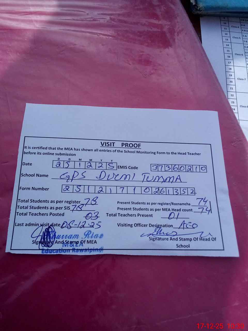 | EMIS Code: 37360210 | Name of School: GPS DULMI TUMMA | |||