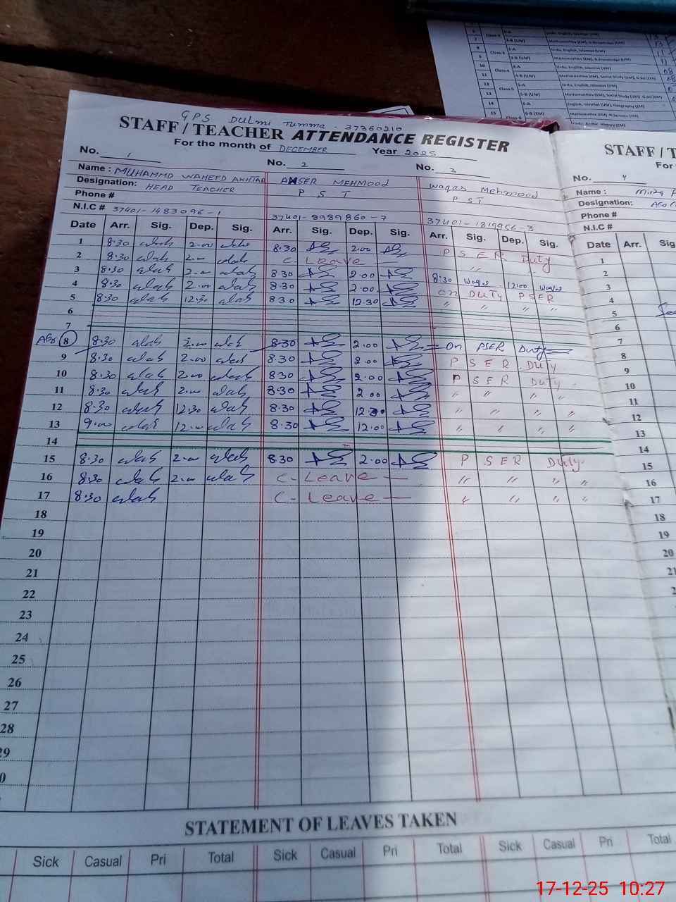 | Name: Mu**** Wa**** Ak**** Designation: (School Headmaster's/Headmistress's) PST Phone/Cell Number: 03**** |