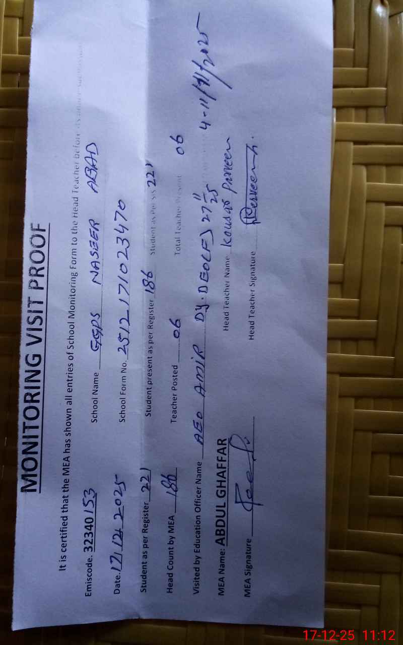 | EMIS Code: 32340153 | Name of School: GGPS NASEER ABAD | |||