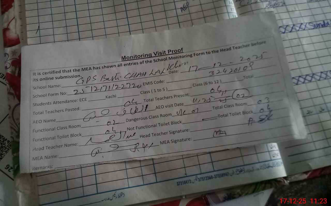 | EMIS Code: 32420109 | Name of School: GPS BASTI CHAH LAL KHAN | |||