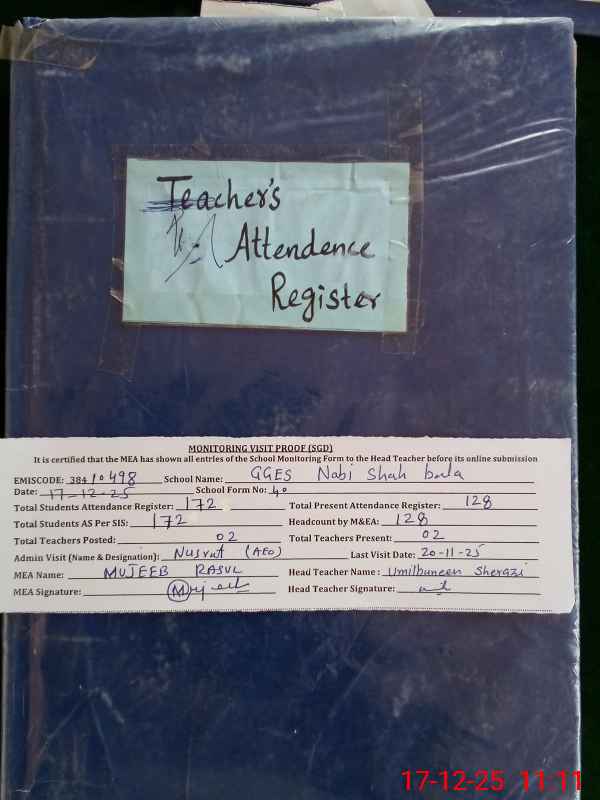 | Attendance Register | Head Teacher | MEA with School | Visit Proof |