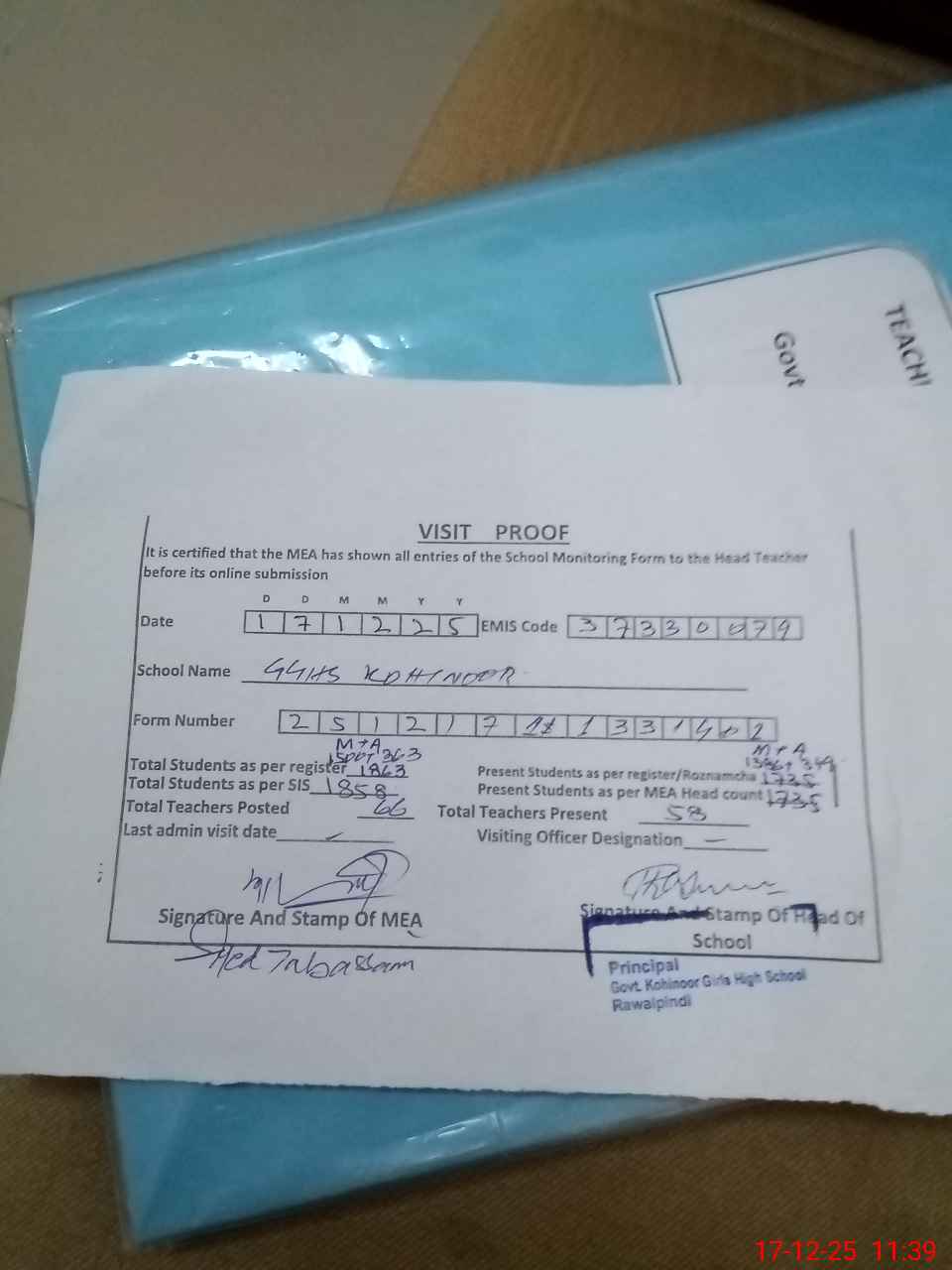 | EMIS Code: 37330079 | Name of School: GGHS KOH-I-NOOR | |||