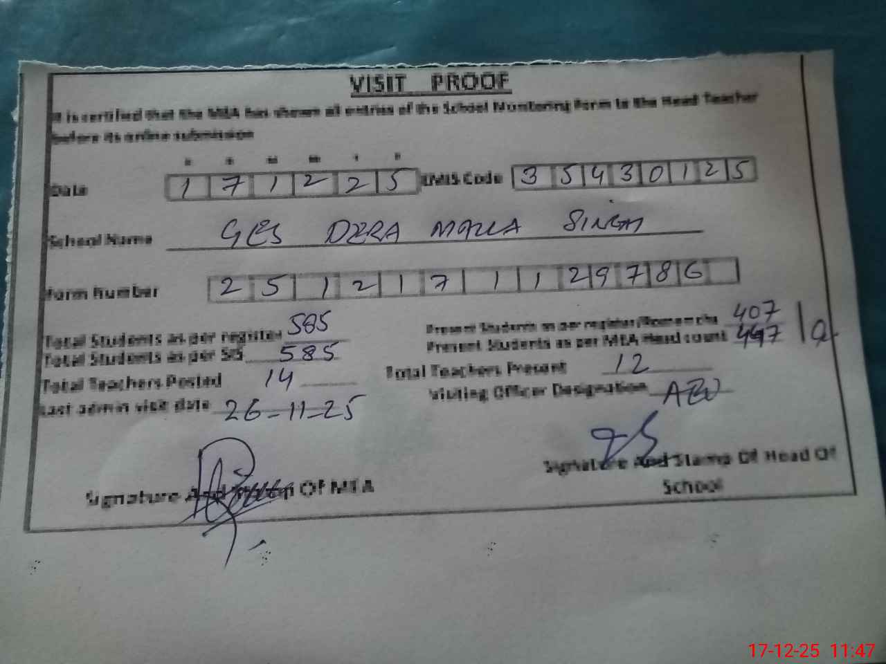 | EMIS Code: 35430125 | Name of School: GES DERA MALLA SINGH | |||
