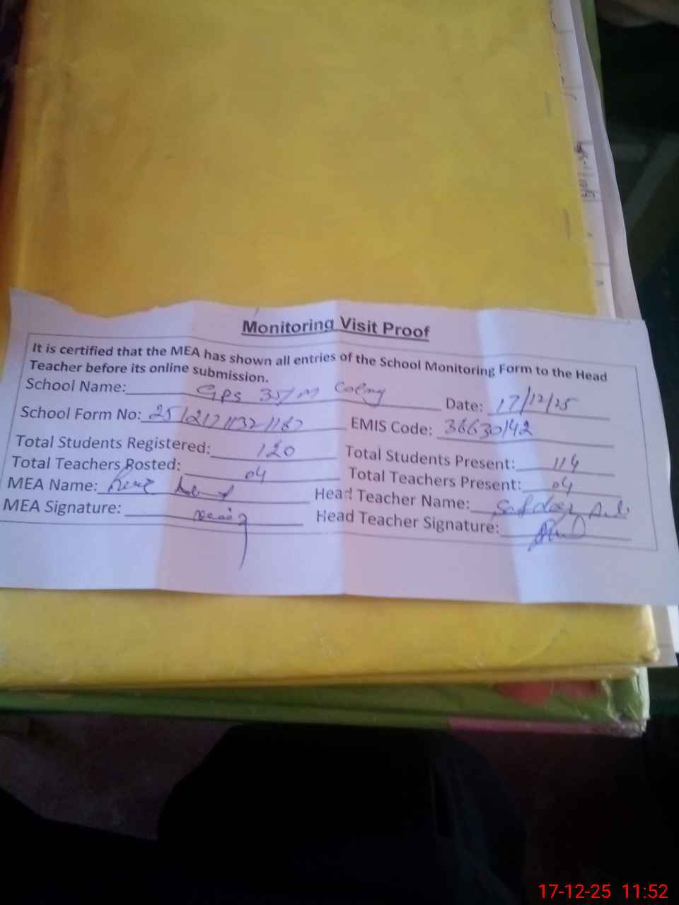 | EMIS Code: 36630142 | Name of School: GPS 35/M COLONY | |||