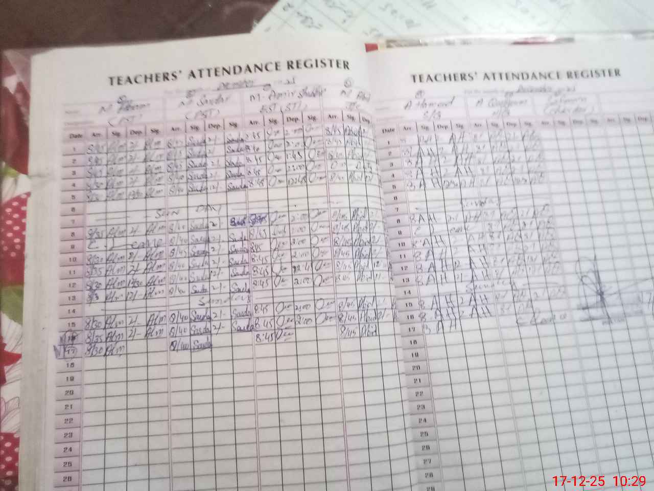 | CNIC | Full Name | Designation | R/C | Absence During Last Calender Month |