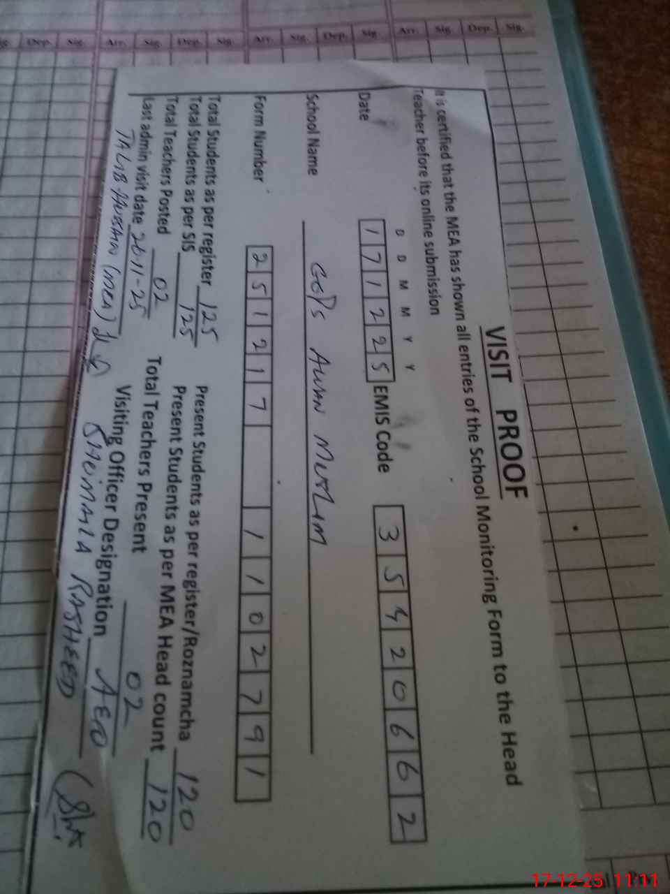 | EMIS Code: 35420662 | Name of School: GGPS AWAAN MUSLIM | |||
