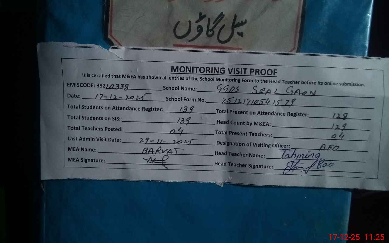 | EMIS Code: 39210338 | Name of School: GGPS SEEL GAON | |||