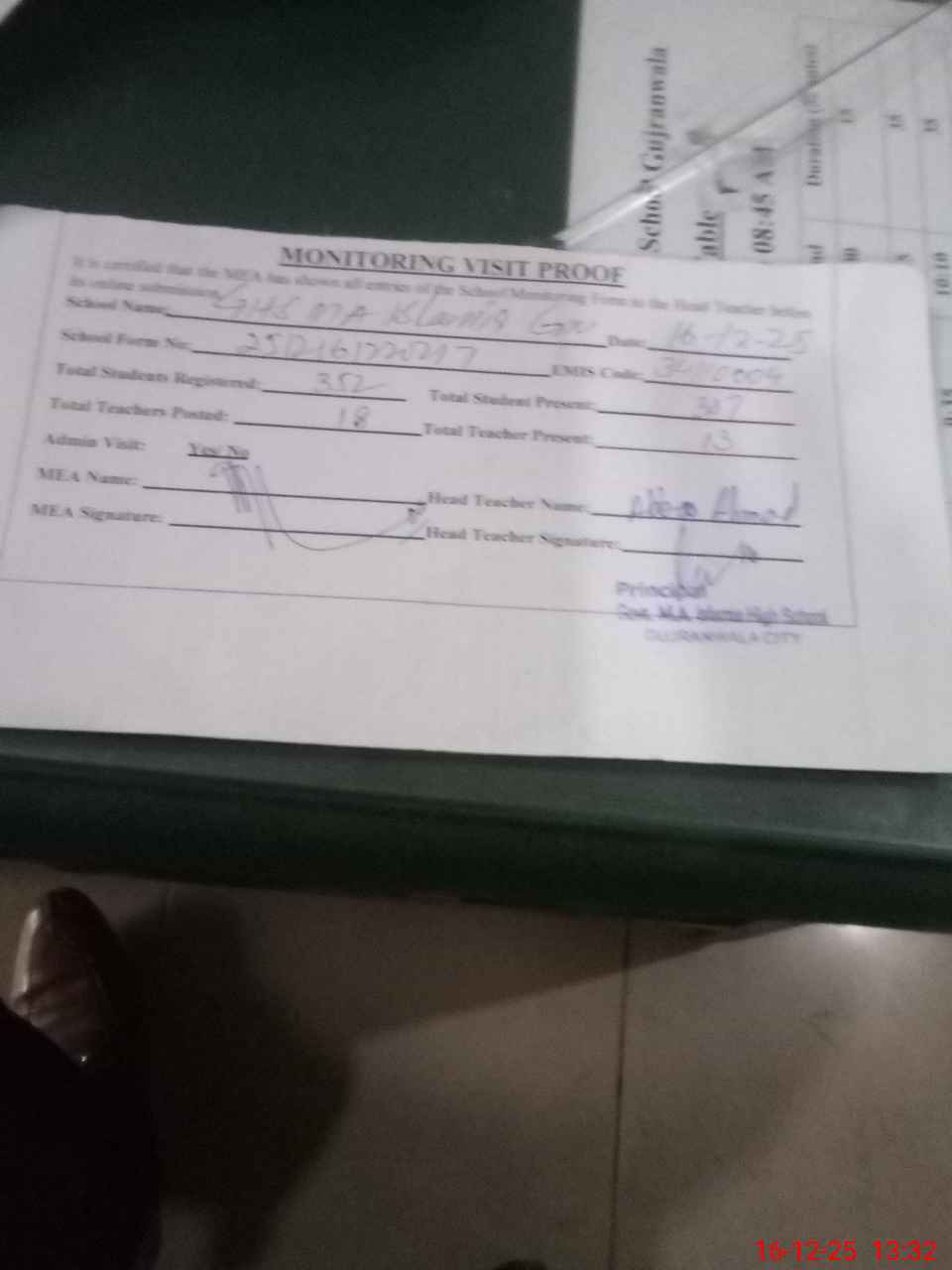 | EMIS Code: 34110004 | Name of School: GHS M.A. ISLAMIA | |||