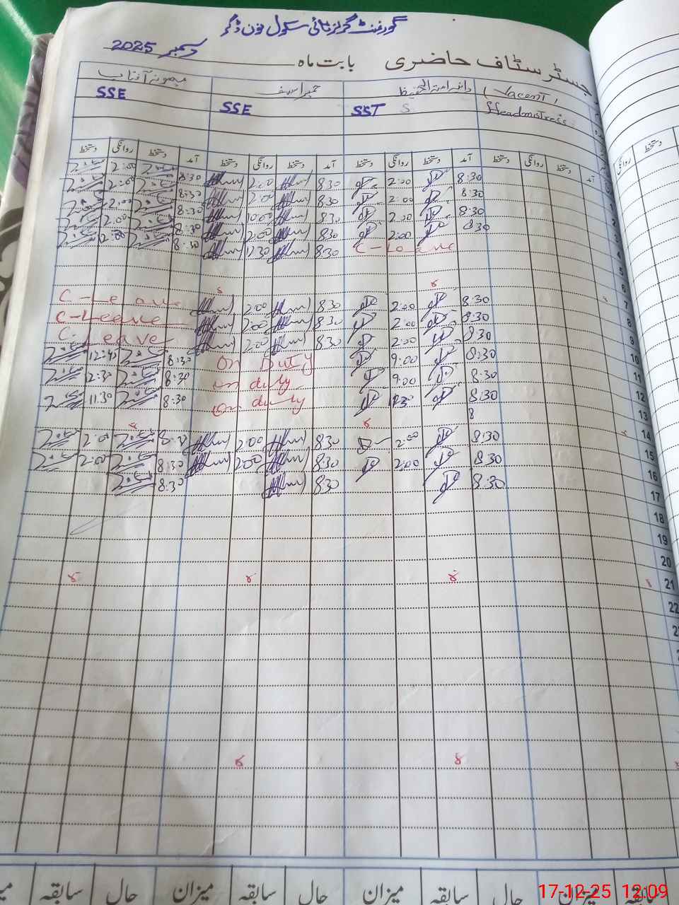 | CNIC | Full Name | Designation | R/C | Absence during last cal. month |