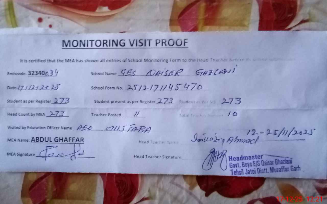 | EMIS Code: 32340034 | Name of School: GES QAISER GHAZLANI | |||