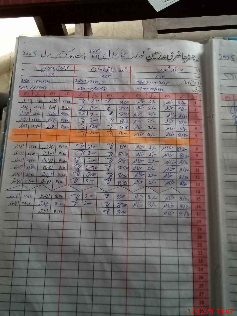 | Name: Kh**** Me**** Designation: (School Headmaster's/Headmistress's) EST Phone/Cell Number: 03**** |