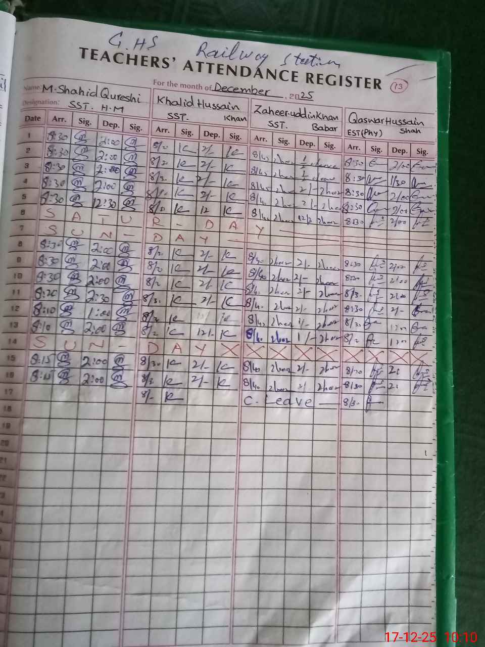 | 36**** | Mu**** Sh**** Qu**** | SST Computer Science | Regular | 0 | 0 | 0 | 0 | 0 | 0 | 0 | 0 | 0 | Absent (Un-Authorized) |